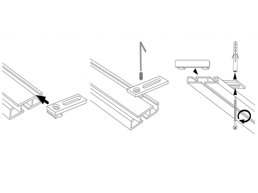 Počet držiakov je závislý na dĺžke koľajnice, inštalácia je približne každých 100 cm.